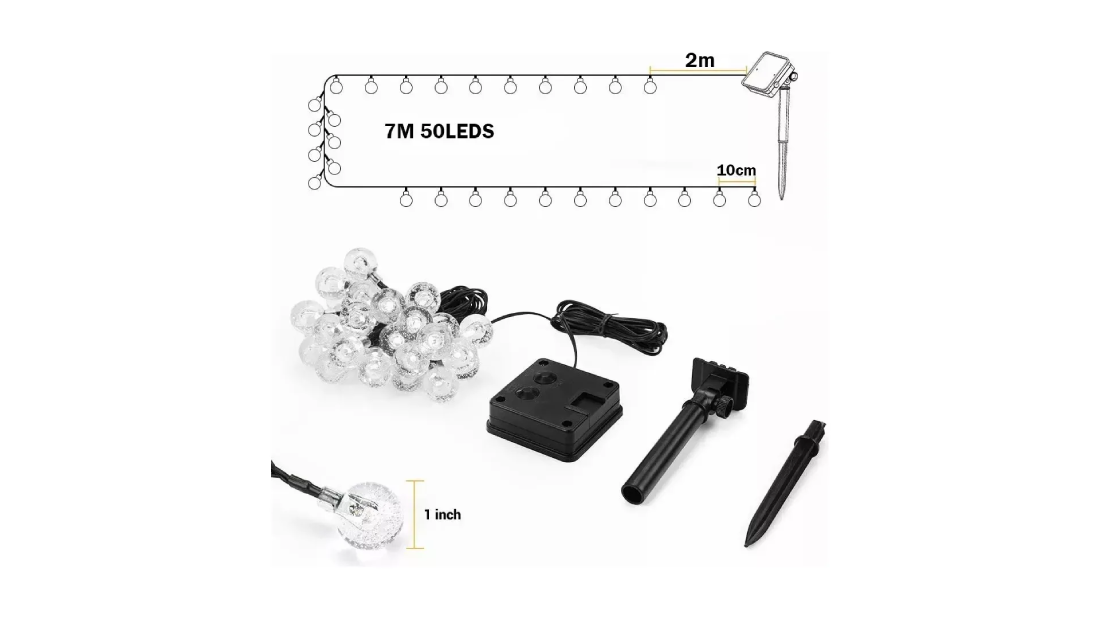Solo clava el panel solar en el suelo o fíjalo en una superficie, acomoda las luces donde quieras, selecciona el modo de luz y deja que la magia se encienda sola cada noche.
